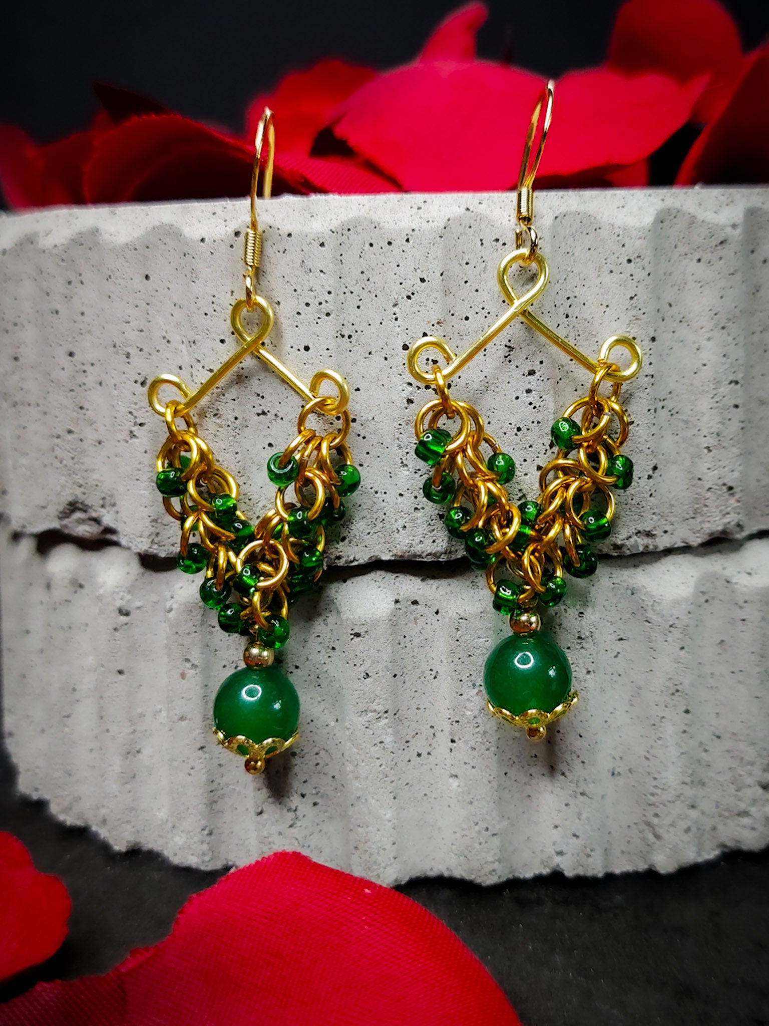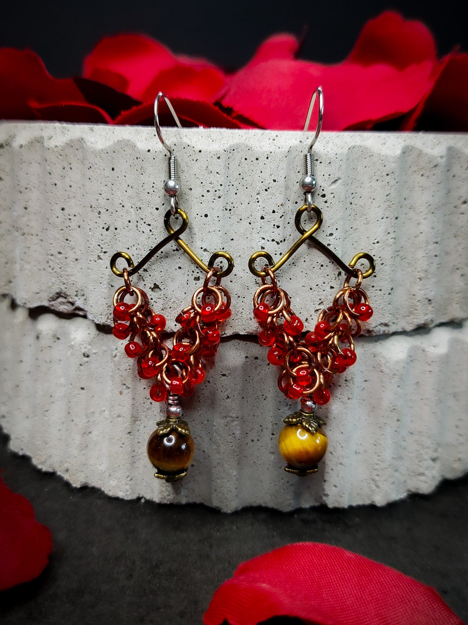 Lokkarnir eru gerðir úr rafbrynjuðum álhringun og fíngerðum glerperlum.