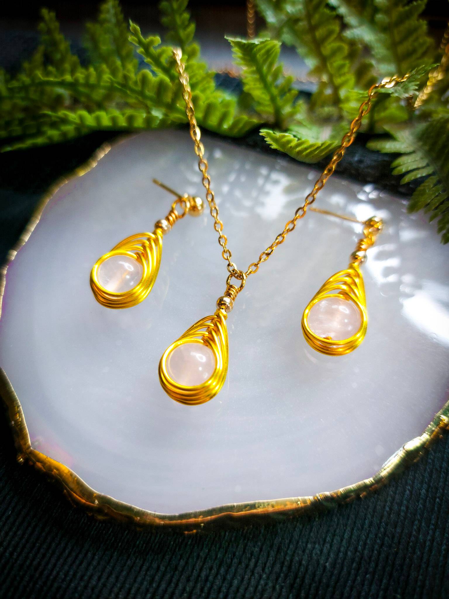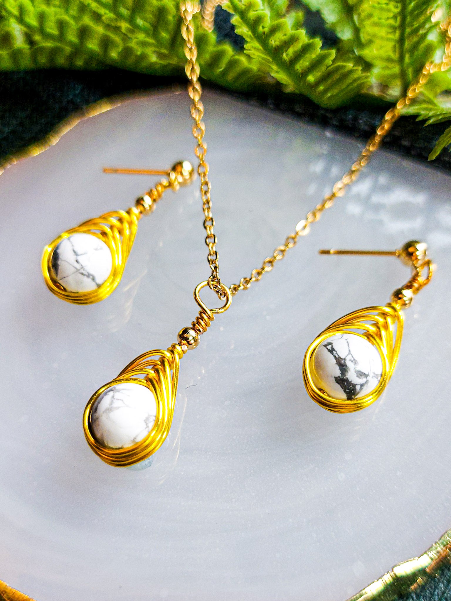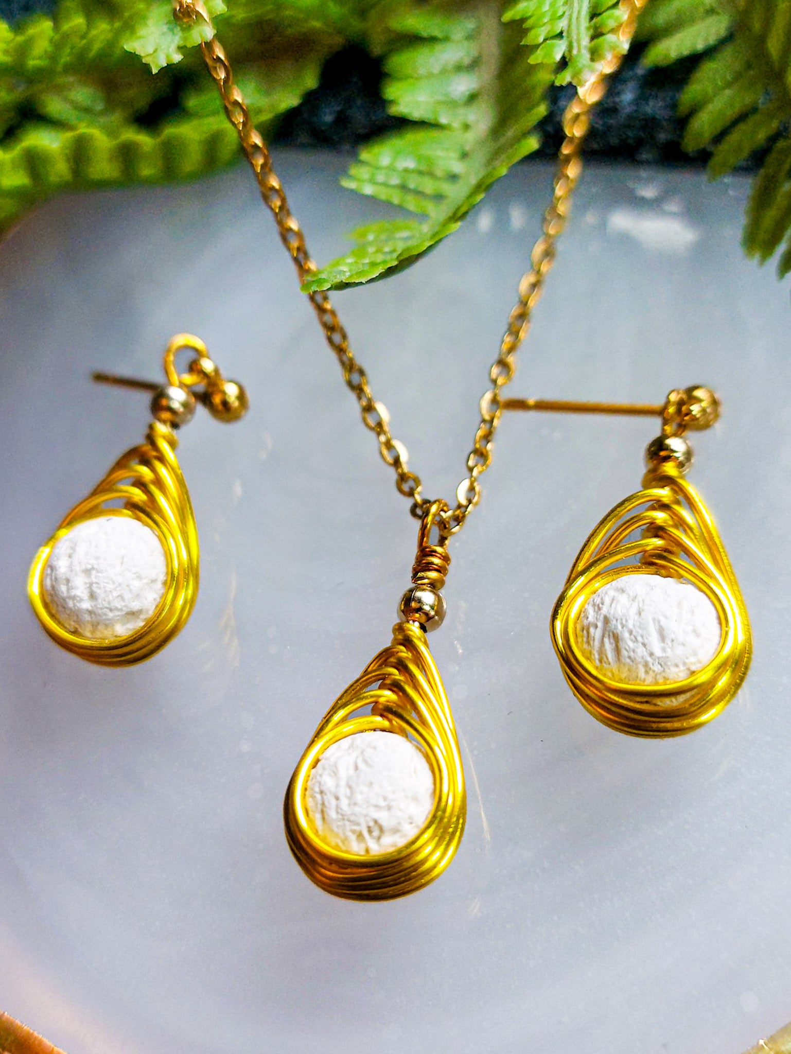 Eyrnalokkar og hálsmen sem koma saman í fallegri gjafaöskju.