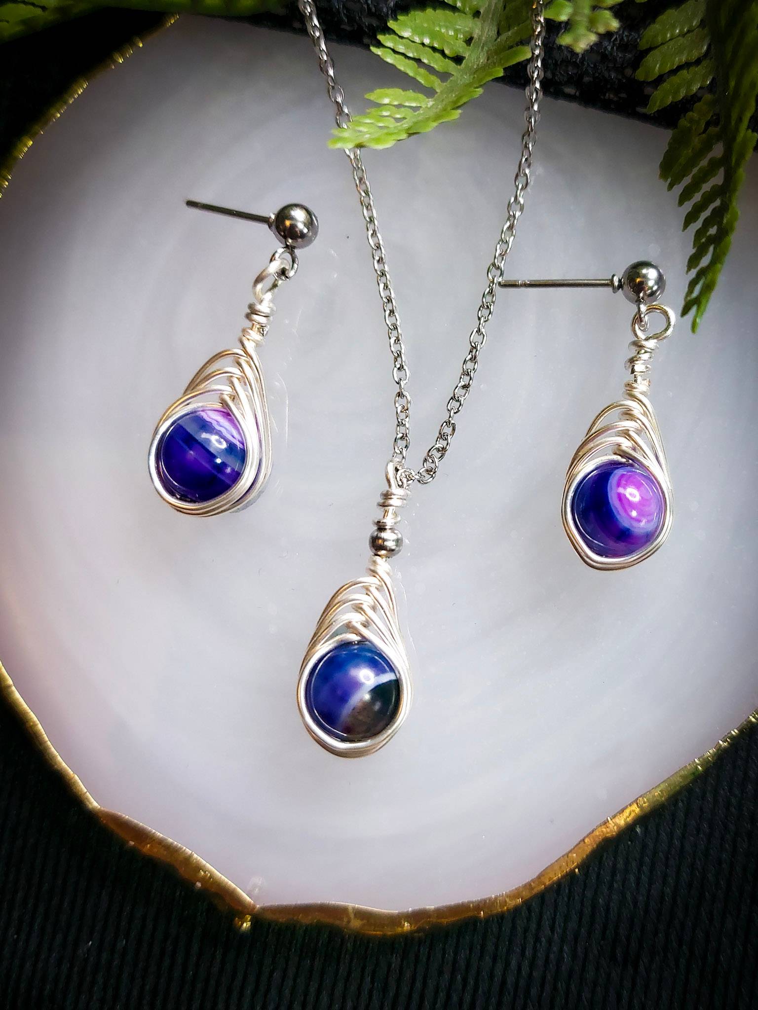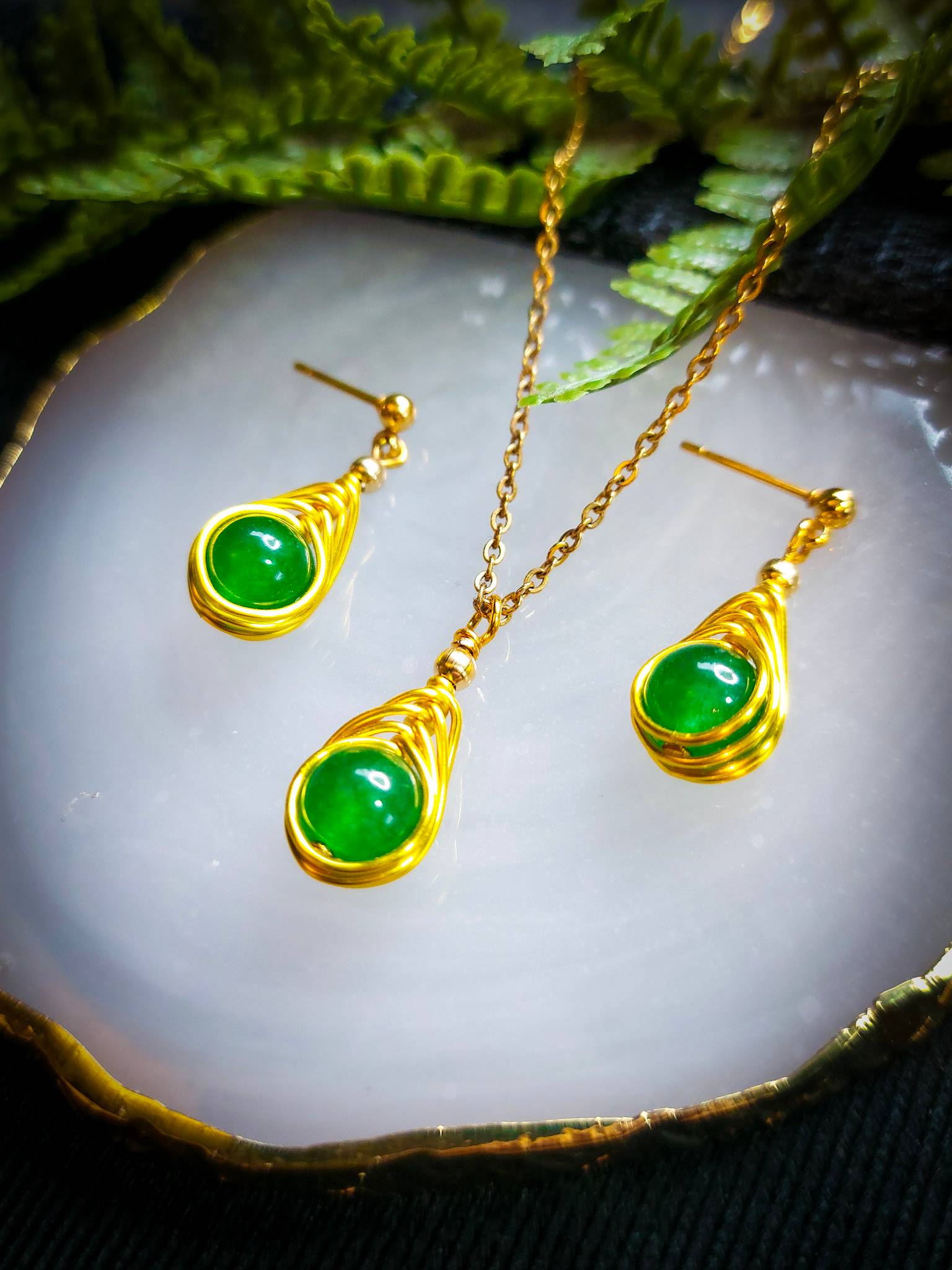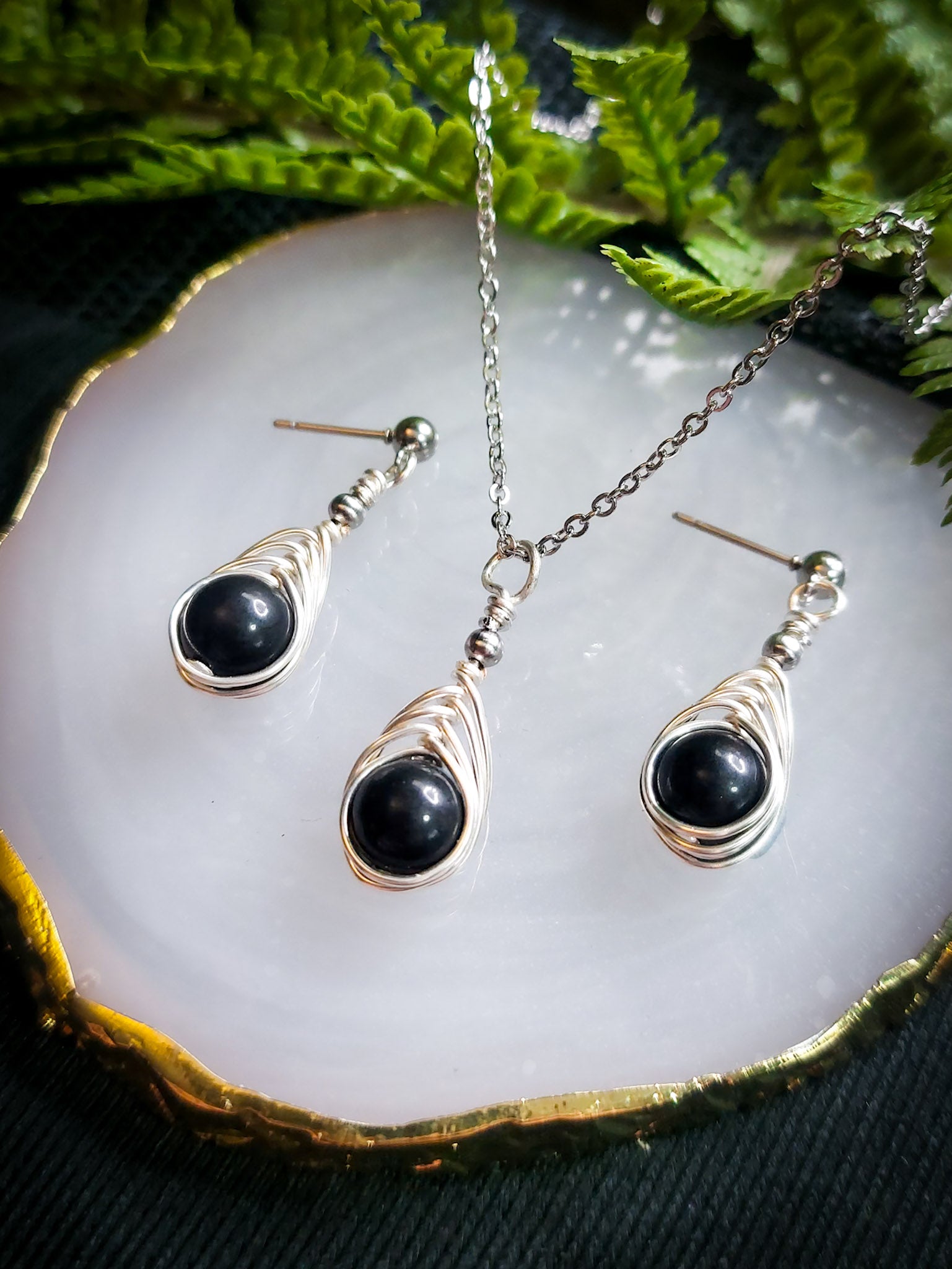 Eyrnalokkar og hálsmen sem koma saman í fallegri gjafaöskju.