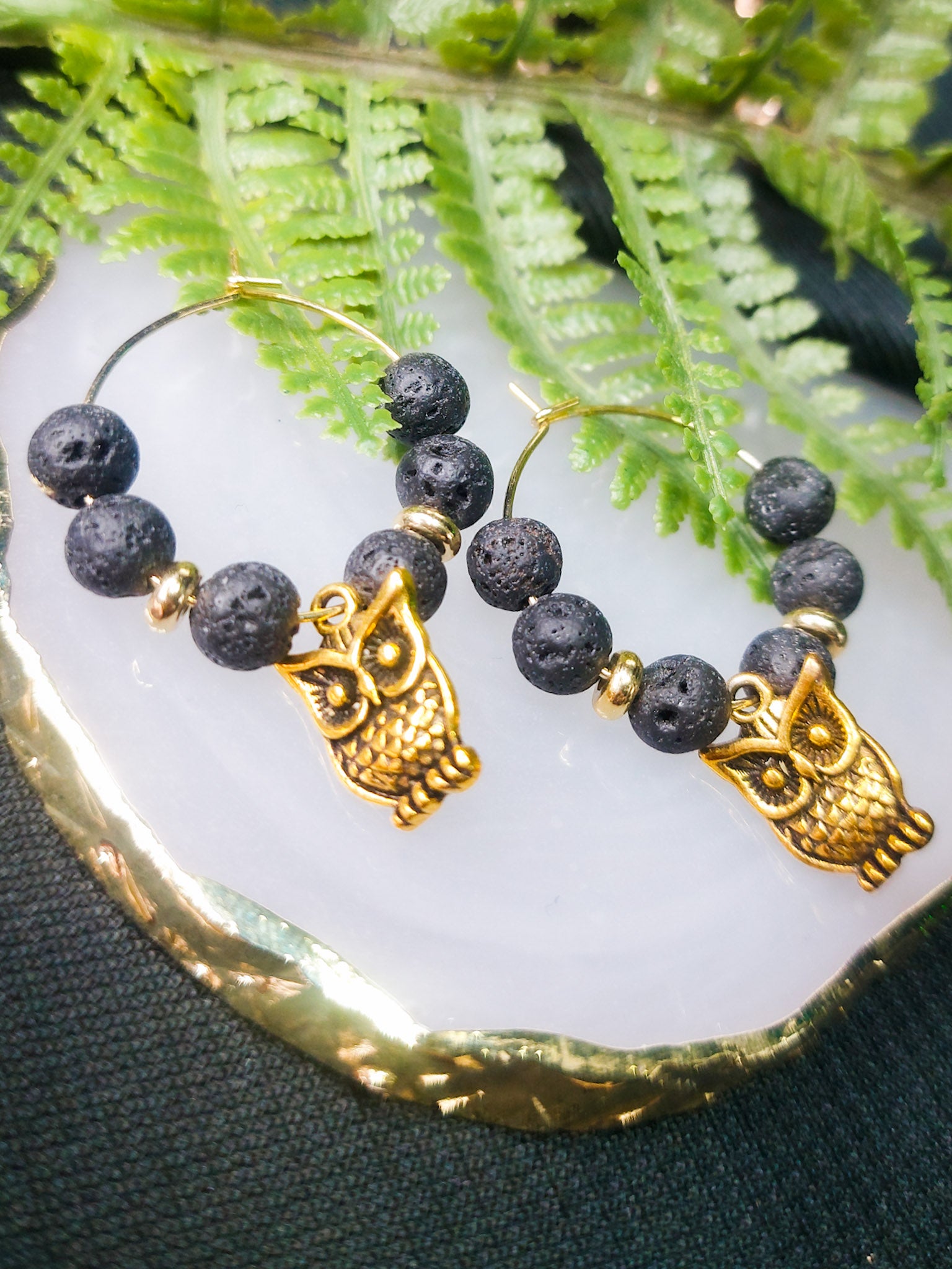 25mm hoops úr ryðfríu stáli með hraunperlum og uglu krúttum